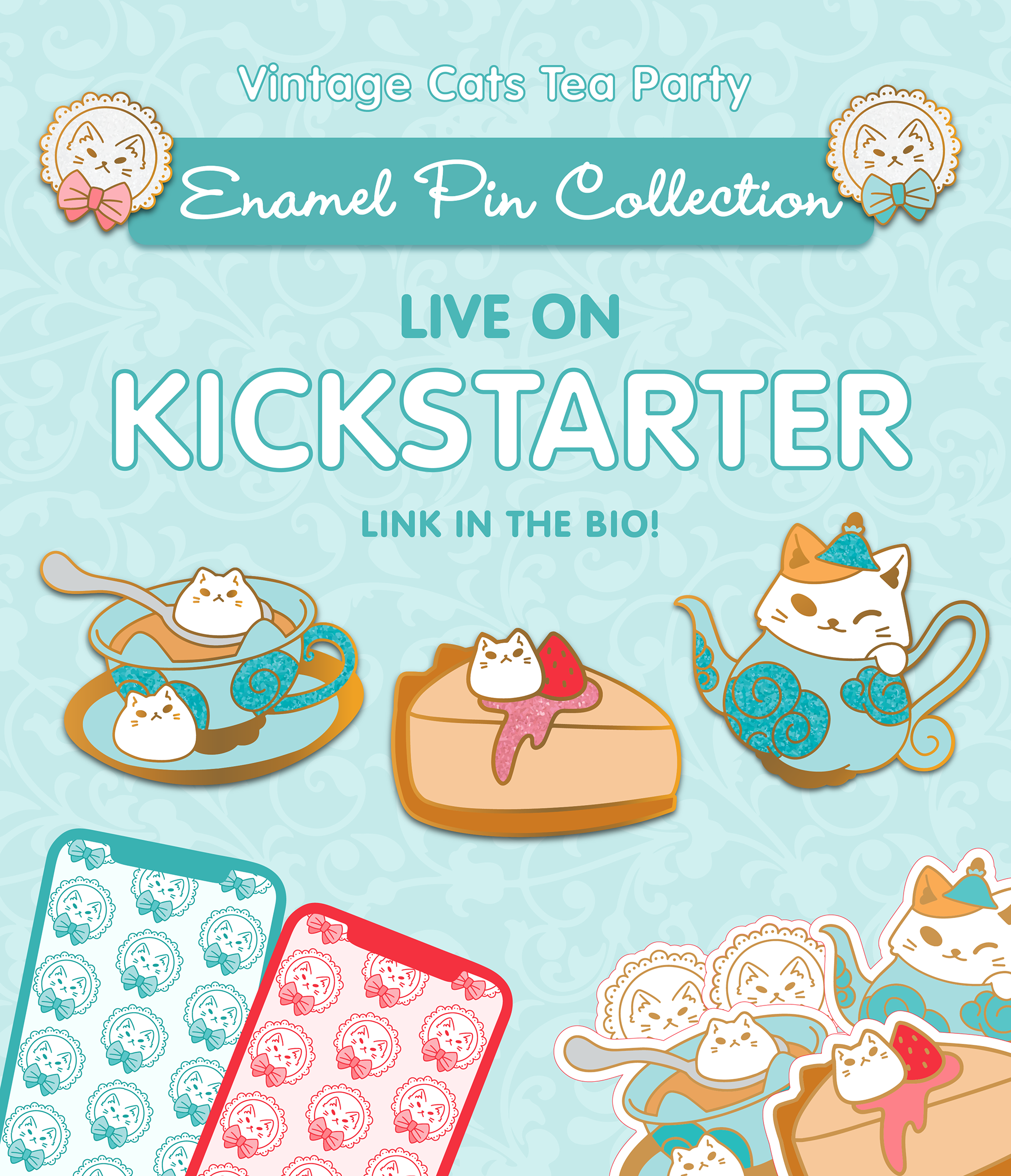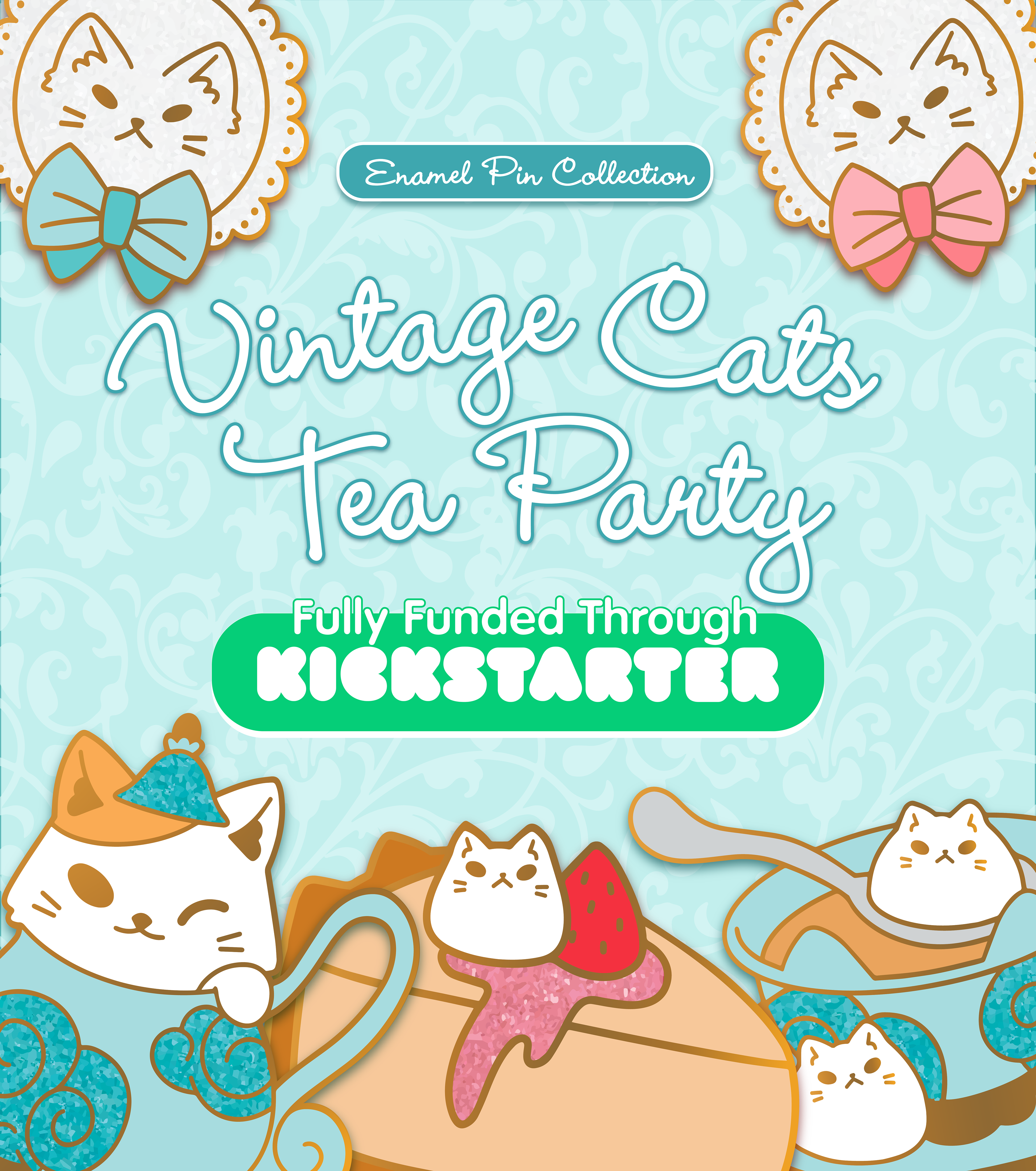 The initial goal of CAD $300 went towards unlocking the Vintage Tea Pot Cat. Additional pins were unlocked through stretch goals.