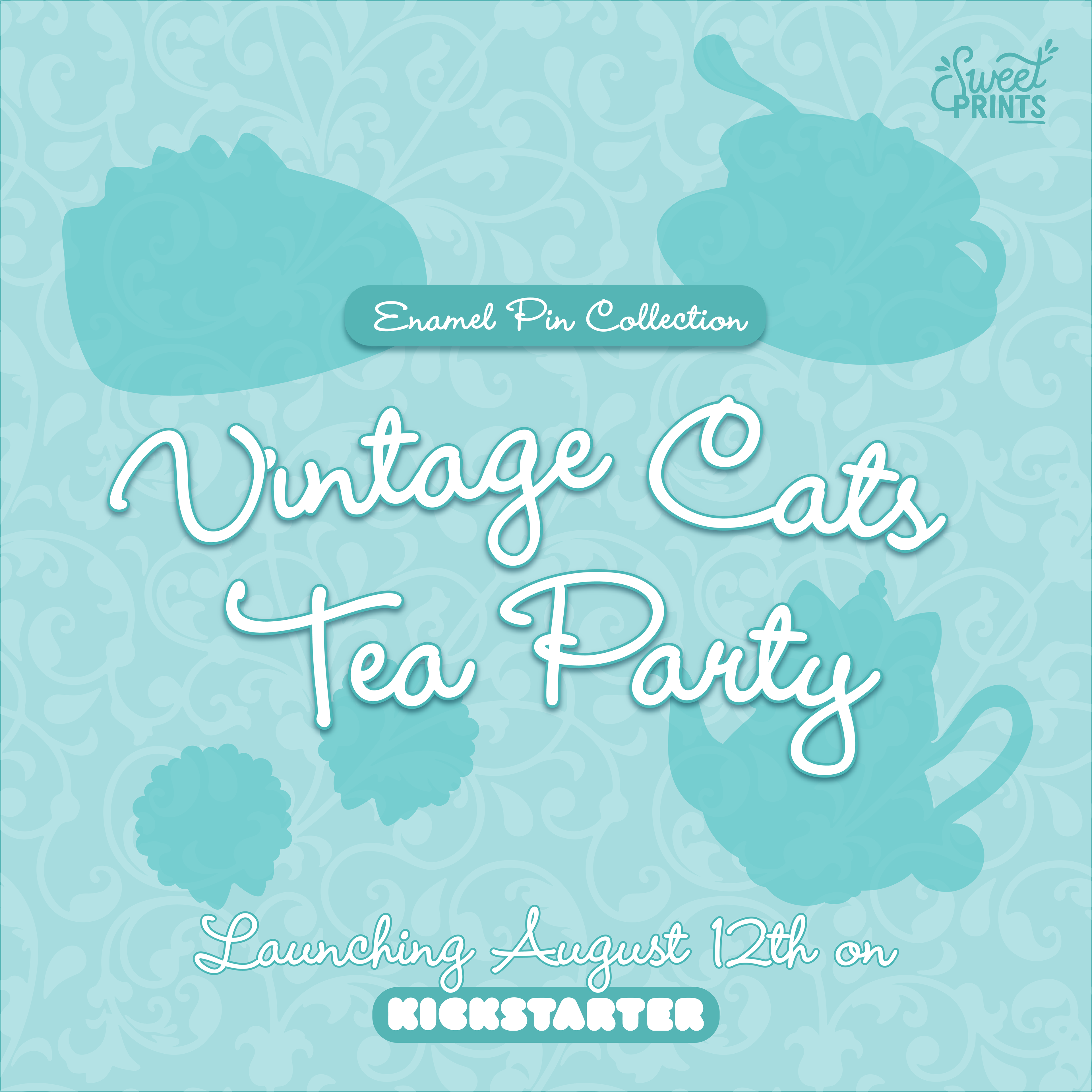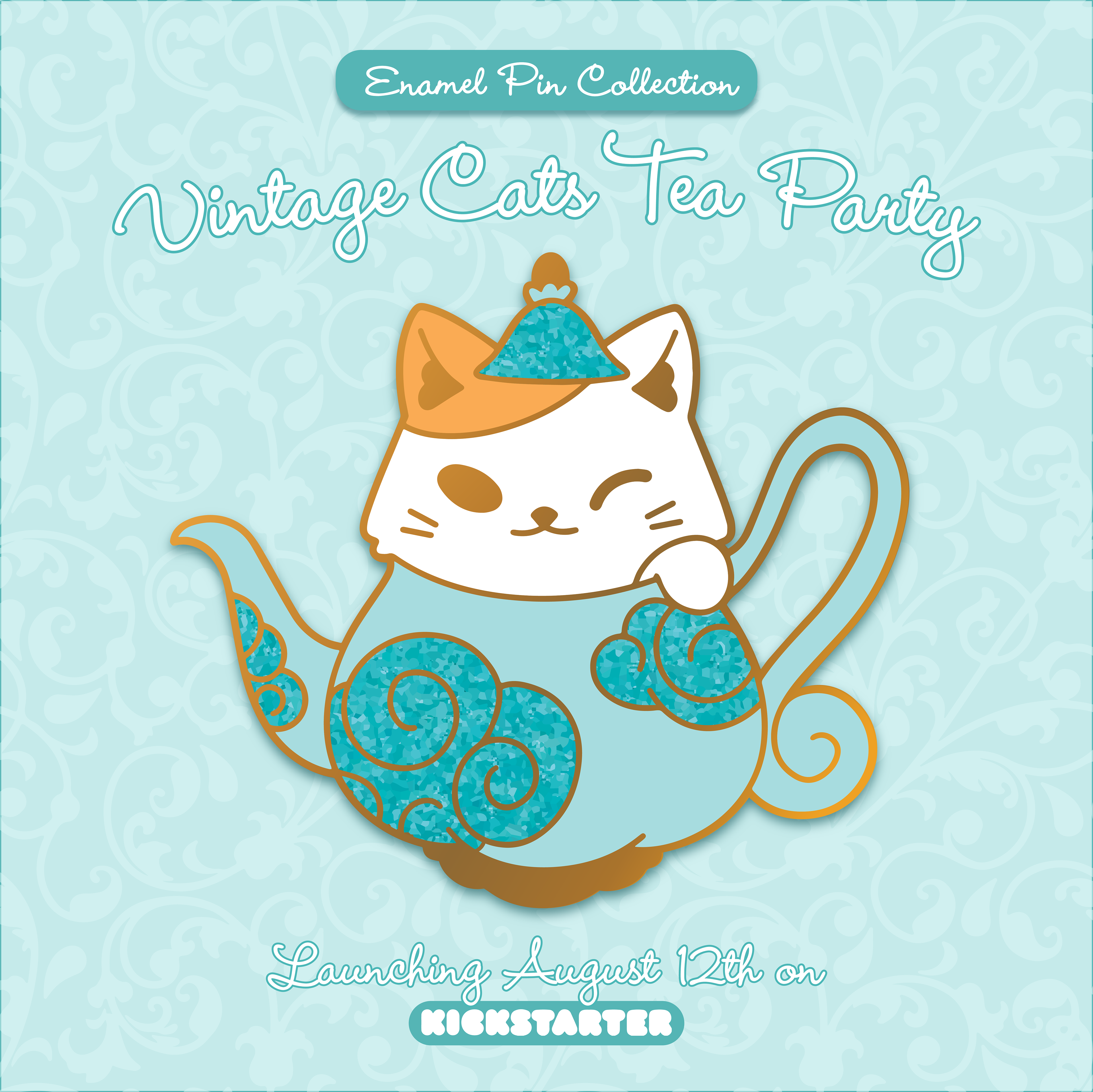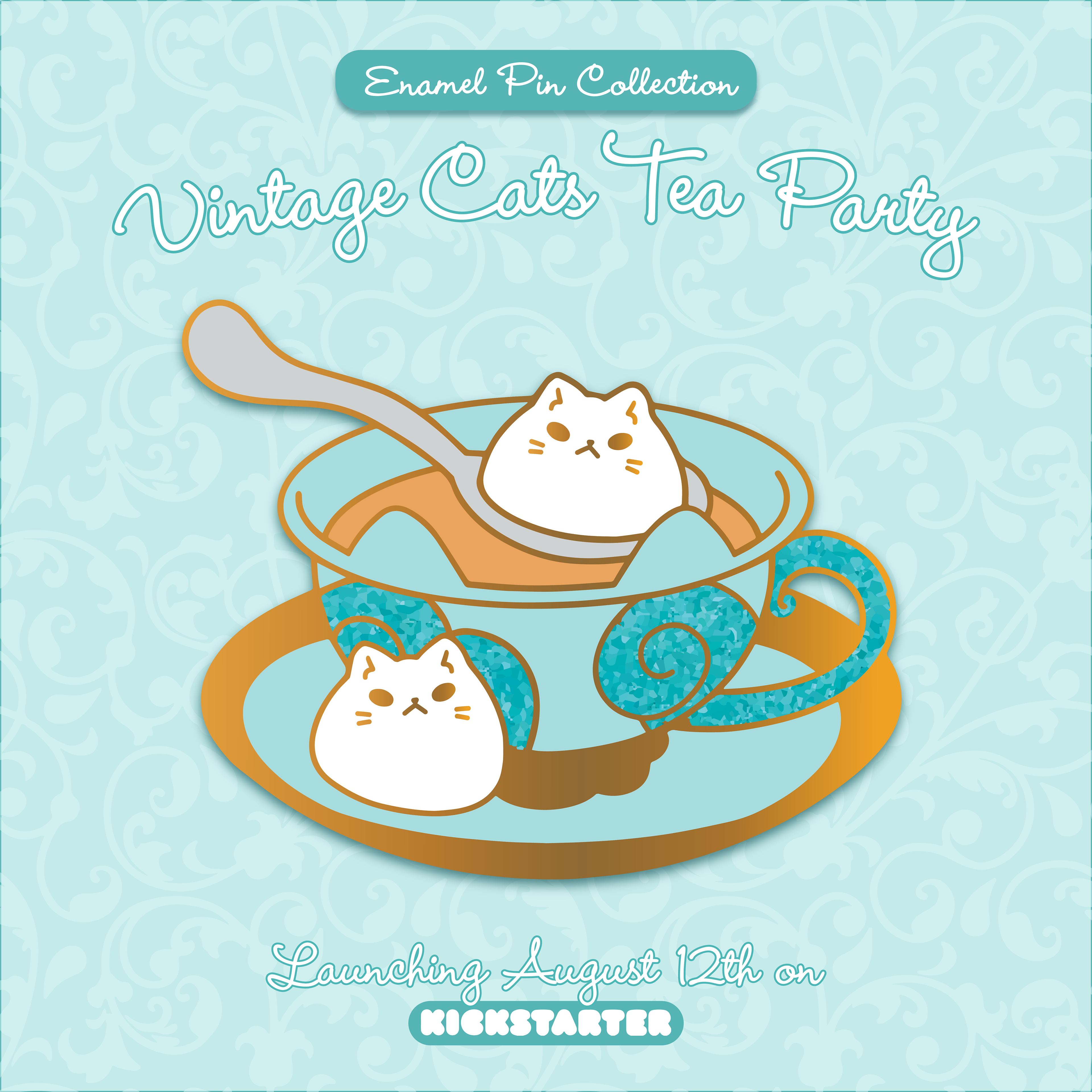 The Vintage Cats Tea Party | Enamel Pin Collection features my newest collection of cat-themed merchandise!